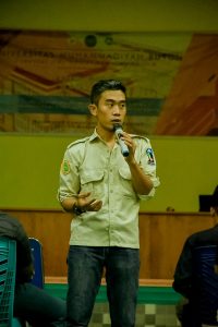 Ansar Suherman akademisi dan kepala program studi ilmu komunikasi UM Buton, selaku narasumber memaparkan tentang bagaimana cara agar netizen dapat terhindar dari hoax dan tidak ikut-ikutan dalam menyebar berita yang belum tentu kebenarannya dengan terlebih dahulu melakukan pengecekan kebenaran berita tersebut.