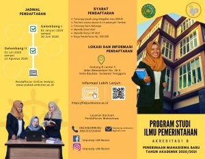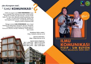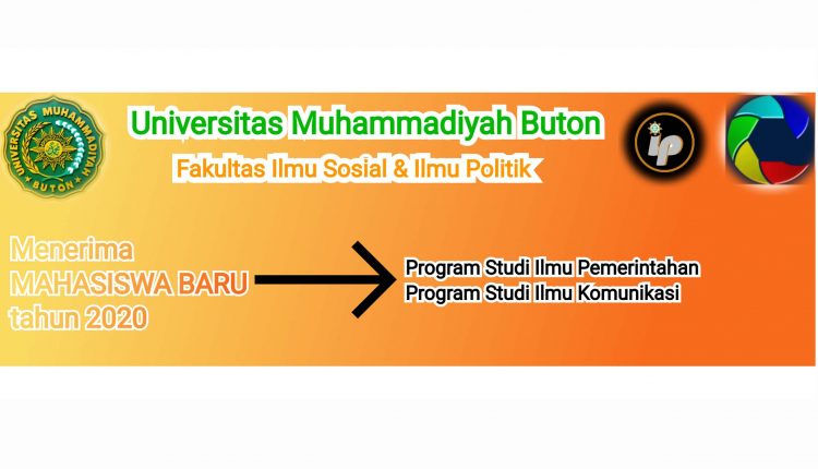 FISIP UM Buton Membuka Penerimaan Mahasiswa Baru Tahun Akademik 2020/2021 Berita By admin Last updated Jan 18, 2020 0 Share FISIP UM Buton membuka pendaftaran mahasiswa baru dengan dua program studi yaitu : Program Studi Ilmu Pemerintahan Program Studi Ilmu Komunikasi
