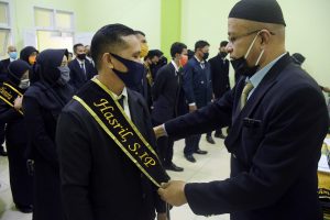Gelar yudisium mahasiswa program sarjana ilmu pemerintahan secara langsung, Fakultas Ilmu Sosial dan Ilmu Politik Universitas Muhammadiyah Buton ketat menerapkan protokol kesehatan sebagaimana arahan kebijakan New Normal atau adaptasi kebiasaan baru.